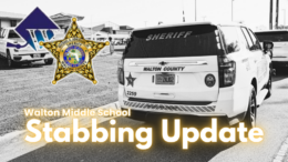 Stabbing at Walton Middle School leaves three in hospital Christopher Saul March 24, 2026 1:40 pm Crime, DeFuniak Springs, Walton County This is a developing story; check back here periodically for updates. UPDATE: Charges Filed, Victims Still in Intensive Care, Officials Call Attack “Totally Random” Following further investigation and a review of surveillance footage, the suspect has been formally charged with attempted murder, two counts of aggravated battery with a deadly weapon, wearing a mask during the commission of a felony, tampering with evidence, and disrupting a school function, according to a statement posted on the Walton County Sheriff’s Office Facebook page. Sheriff Michael A Adkinson said investigators have now been able to reconstruct the attack from school surveillance video and stressed that the victims were chosen at random. “From all accounts, this appears to be totally random regarding victim selection,” Adkinson said. “There was no relationship between the victims and the suspect… as far as we understand, this is a completely random set of victims.” Adkinson said the two student victims remain hospitalized in intensive care following emergency procedures. Both of the two children who were attacked are still in the hospital. “They’re still in intensive care and underwent procedures yesterday,” he said, emphasizing the importance of rapid, advanced life-saving care on scene. The paraprofessional injured in the attack has been released. “The paraprofessional is at home,” Adkinson said. State Attorney Ginger Bowden Madden, whose office will ultimately decide how to proceed with prosecution, called the incident a “random act of violence” that...